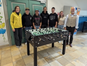 Am 06.Oktober war es so weit! Wir, die Realschule Schlehdorf, erhielten durch Marie Fröhlich von der Firma Montevia, die im Oberland für ihre Teamevents und Worhops, sowie ihr Wassersportprogramm bekannt ist, einen funkelnagelneuen Tischkicker für unsere Aula!
